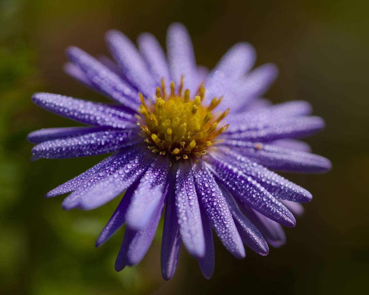 Download 1280x1024 flower, drops, petals, macro, purple, blur wallpaper, background standard 5:4