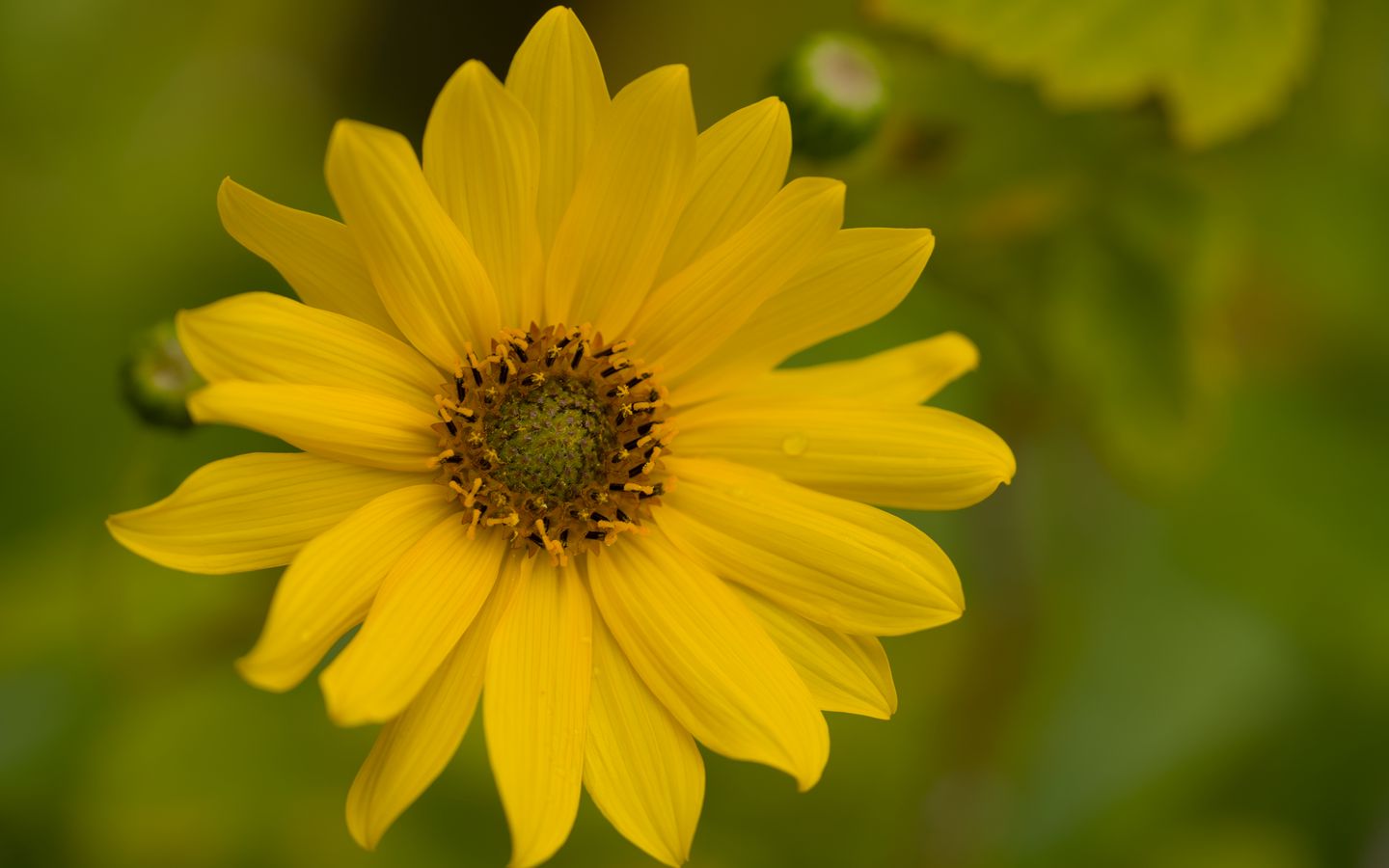 Download 1440x900 flower, petals, drops, macro, yellow, blur wallpaper, background widescreen 16:10