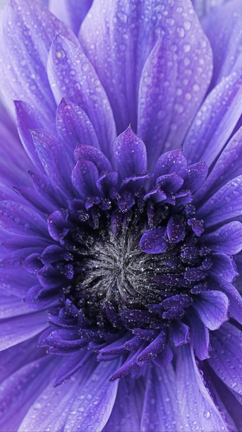 Download 480x854 flower, purple, drops, petals, macro wallpaper, background nokia lumia 630, sony ericsson xperia