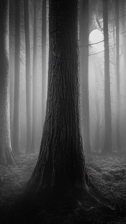Download 480x854 forest, trees, gloomy, dark, bw wallpaper, background nokia lumia 630, sony ericsson xperia