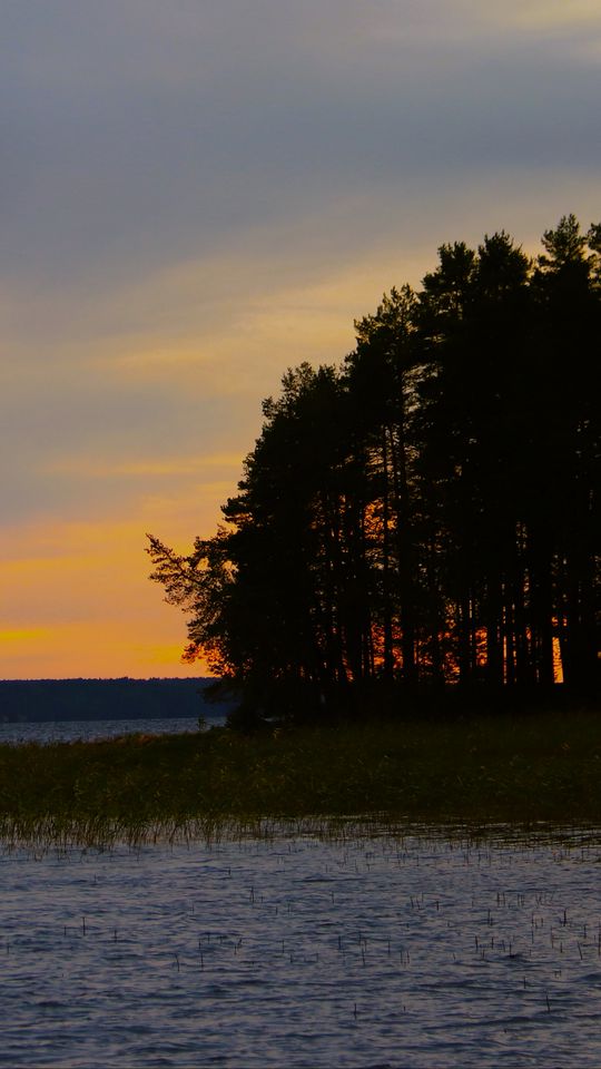 Download 540x960 forest, trees, lake, sky, horizon, landscape, nature, dark wallpaper, background samsung galaxy s4 mini, microsoft lumia 535, philips xenium, lg l90, htc sensation