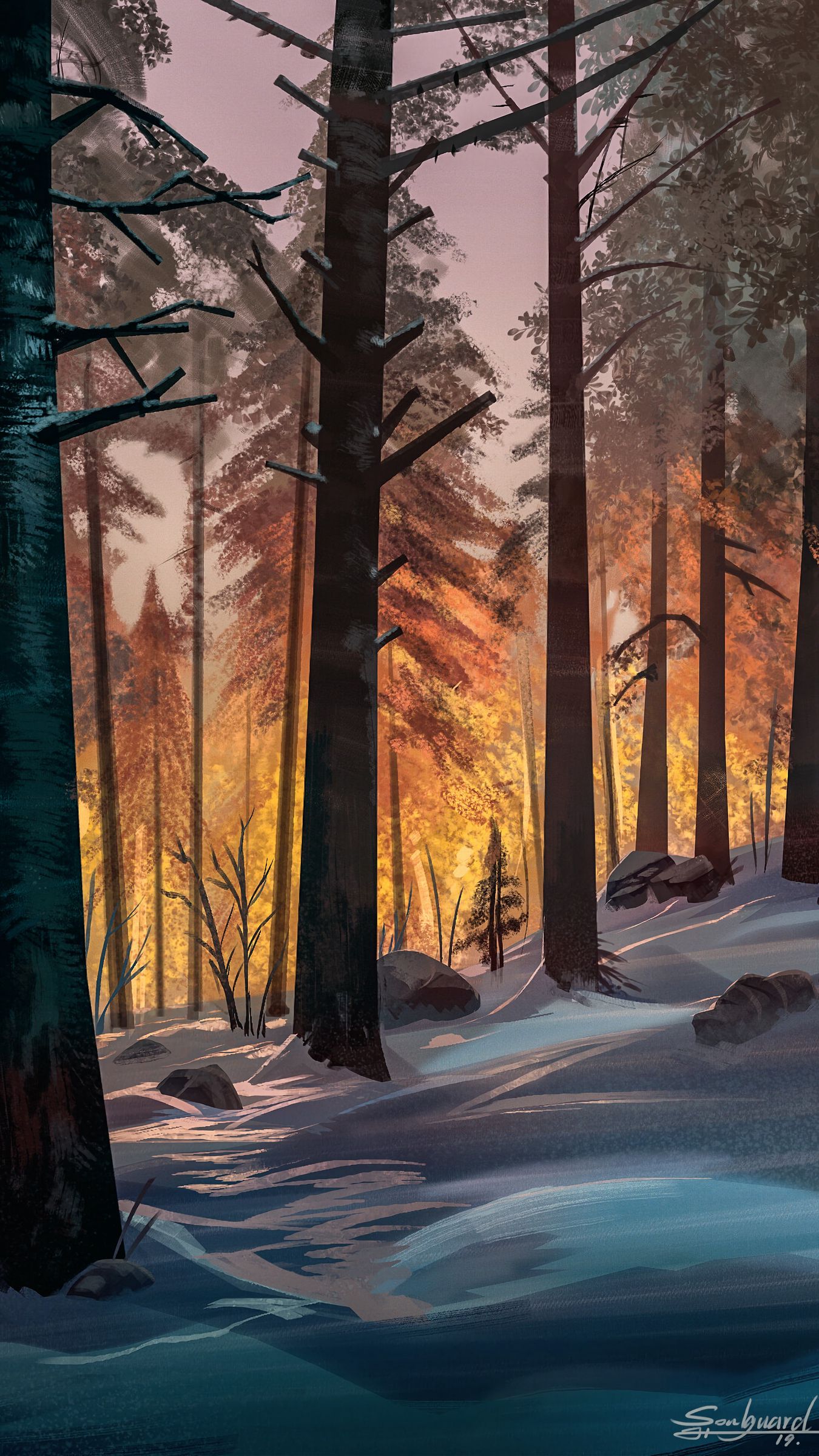 Download 1350x2400 forest, trees, snow, landscape, art wallpaper, background iphone 8+/7+/6s+/6+ for parallax
