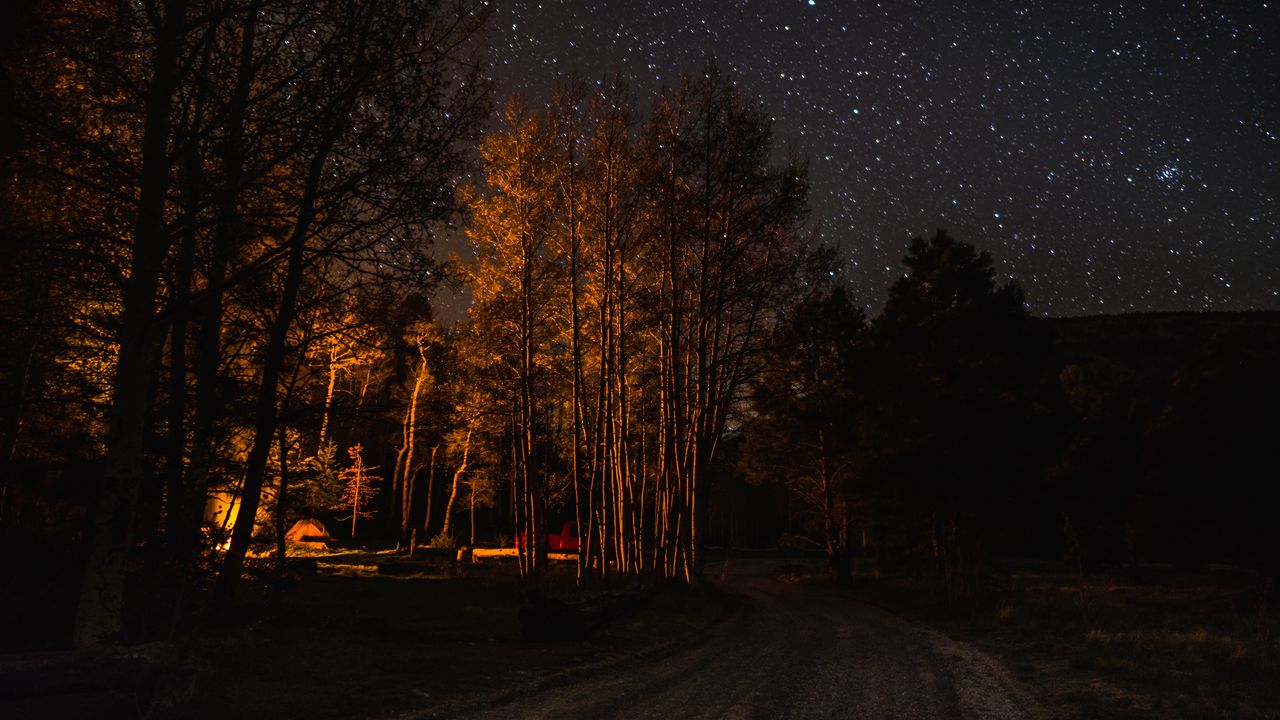 Download 1280x720 forest, trees, tent, light, dark wallpaper, background hd, hdv, 720p