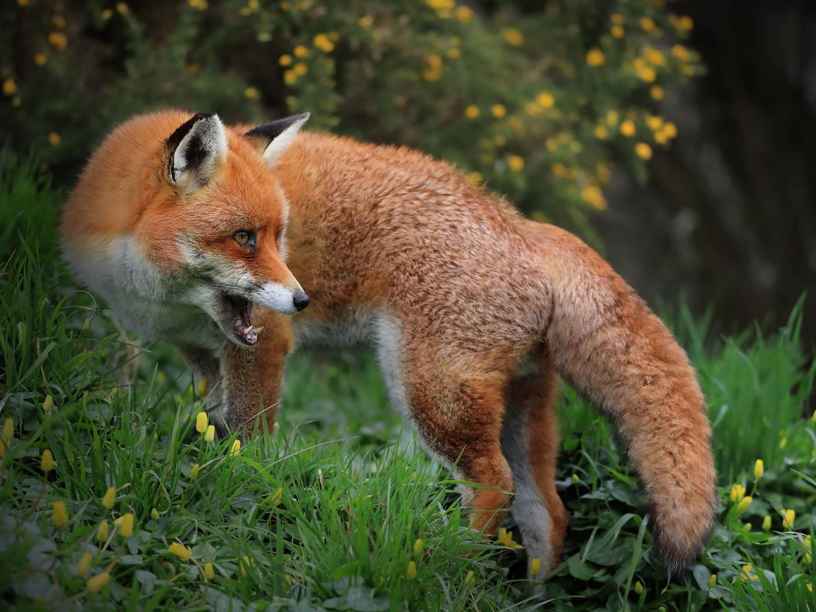 Download 1152x864 fox, predator, wildlife, grass wallpaper, background standard 4:3