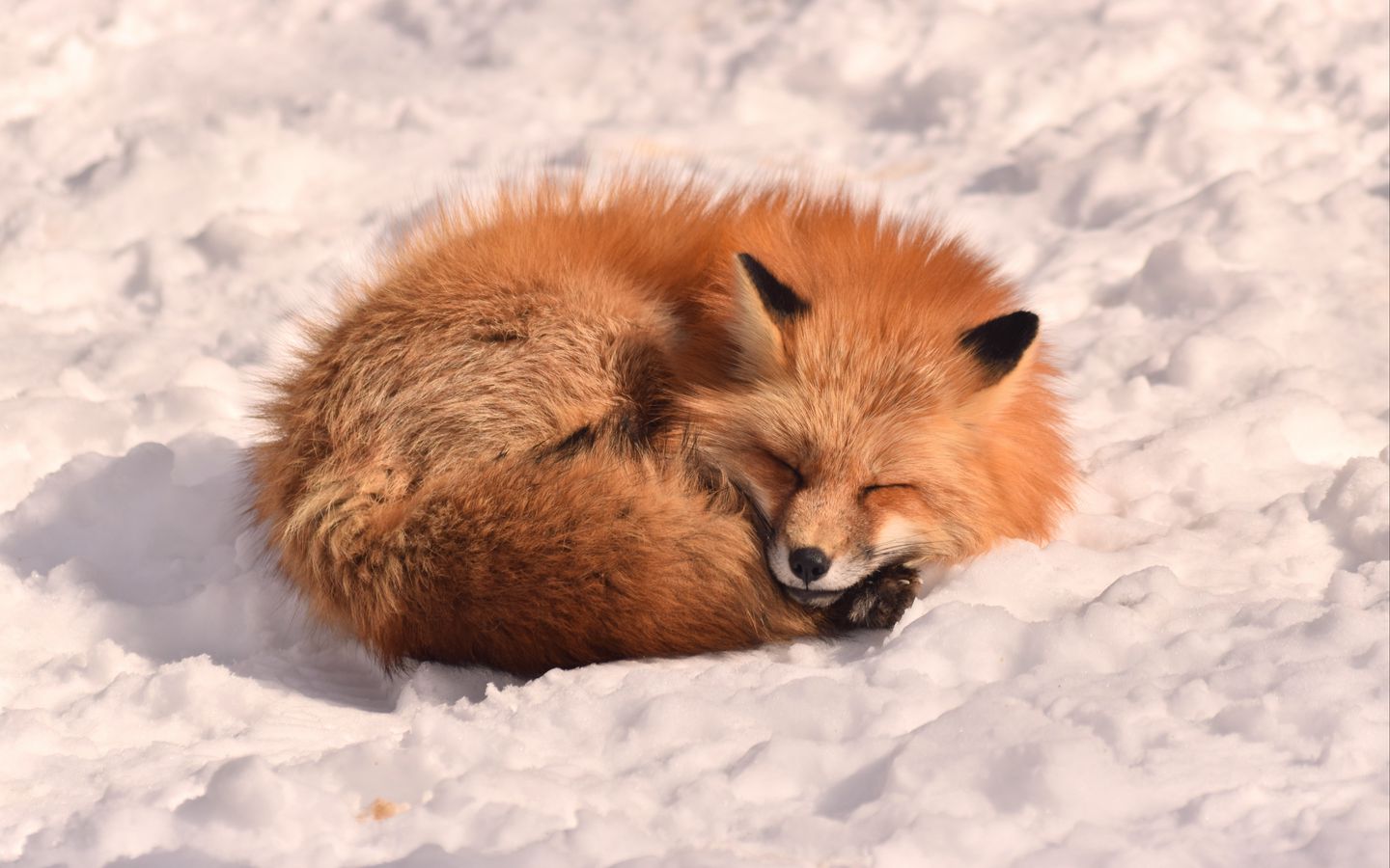 Download 1440x900 fox, sleep, animal, snow wallpaper, background widescreen 16:10