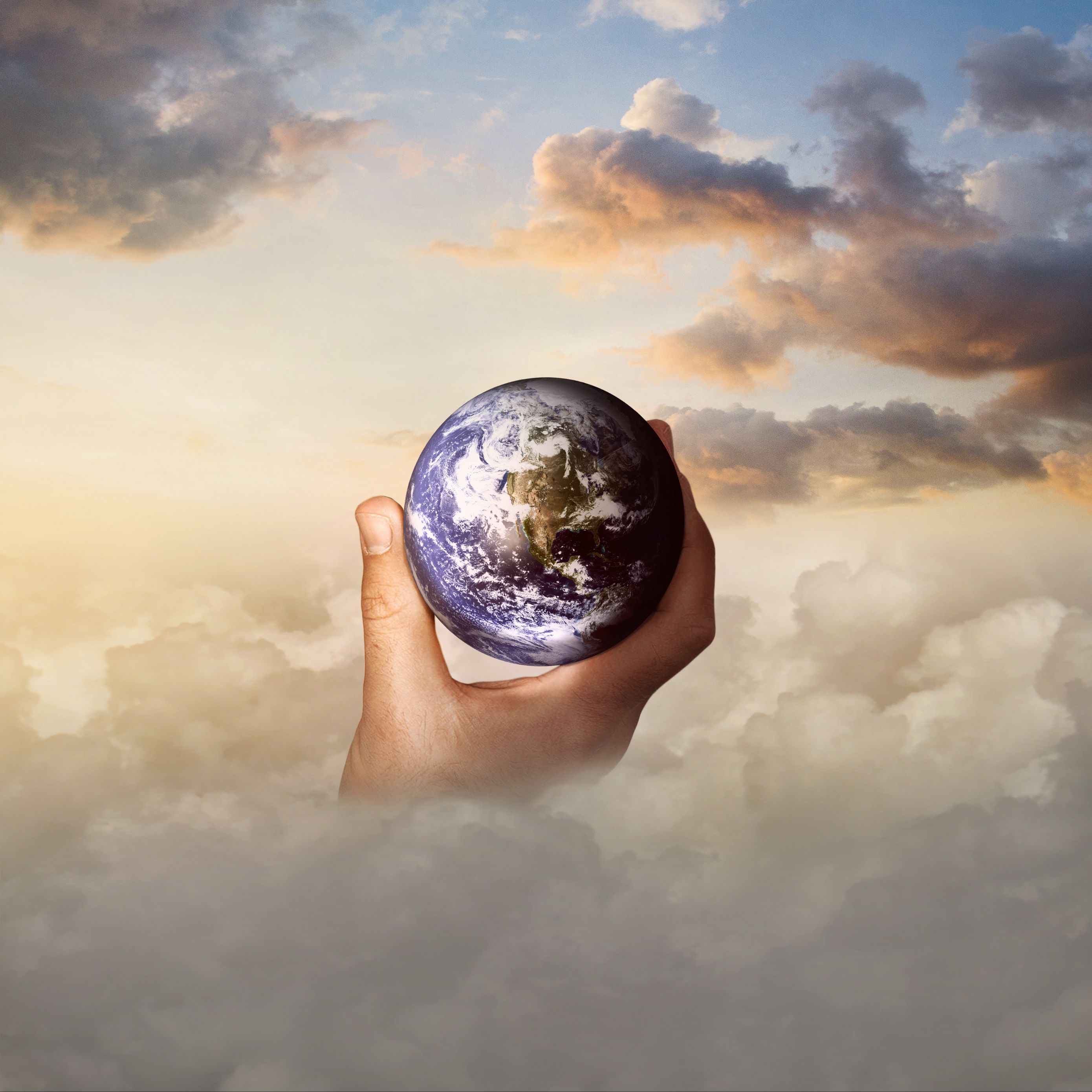 Download 2780x2780 globe, hand, photoshop, clouds, world, travel wallpaper, background ipad air, ipad air 2, ipad 3, ipad 4, ipad mini 2, ipad mini 3, ipad mini 4, ipad pro 9.7" for parallax