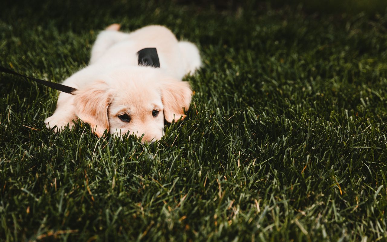Download 1280x800 golden retriever, puppy, dog, grass, lies wallpaper, background widescreen 16:10