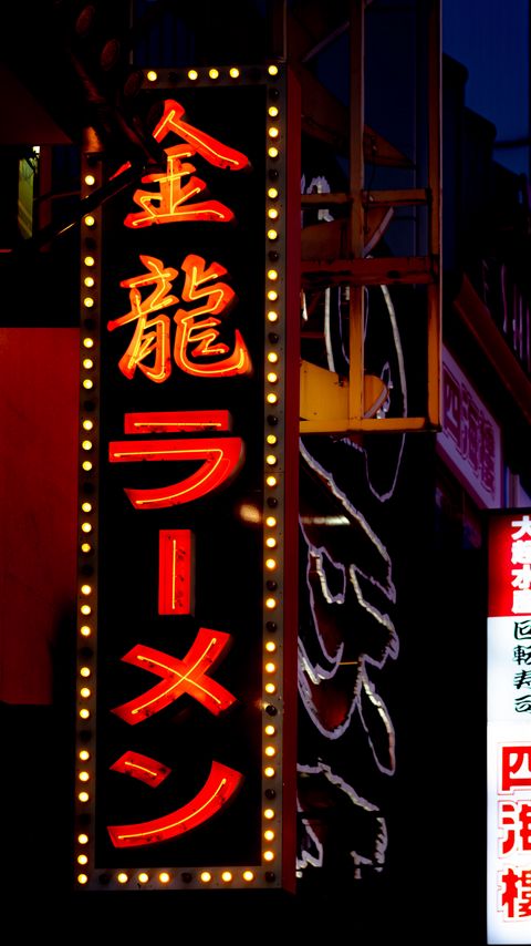 Download 480x854 hieroglyphs, hieroglyph, neon, backlight, building, dark wallpaper, background nokia lumia 630, sony ericsson xperia
