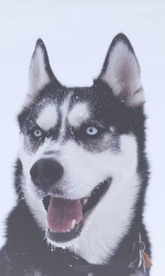 Download 240x400 husky, dog, muzzle, blue-eyed wallpaper, background nokia asha 311, samsung galaxy 580, omnia, lg kp500