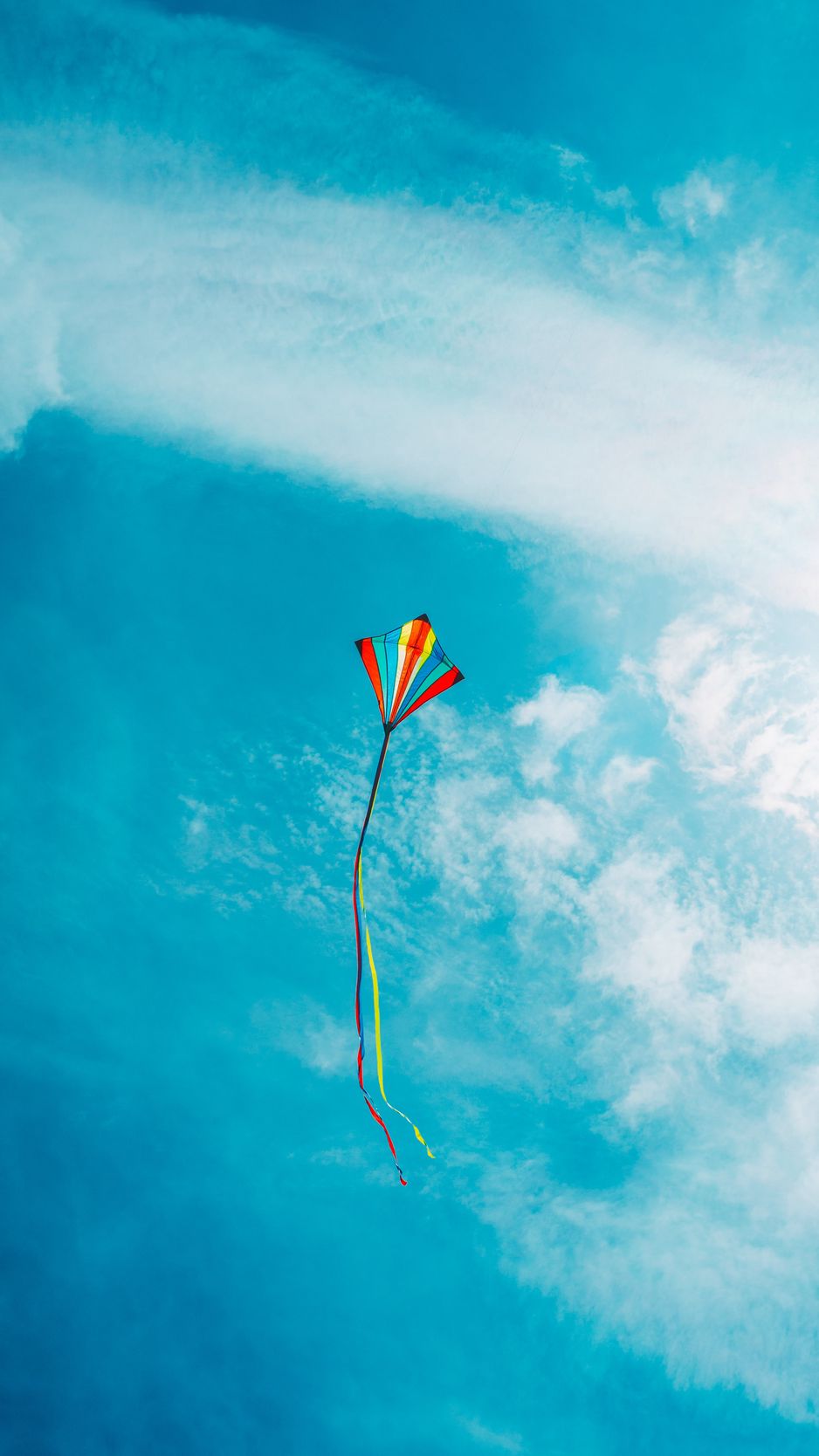 Download 938x1668 kite, ribbons, colorful, sky, clouds wallpaper, background iphone 8/7/6s/6 for parallax