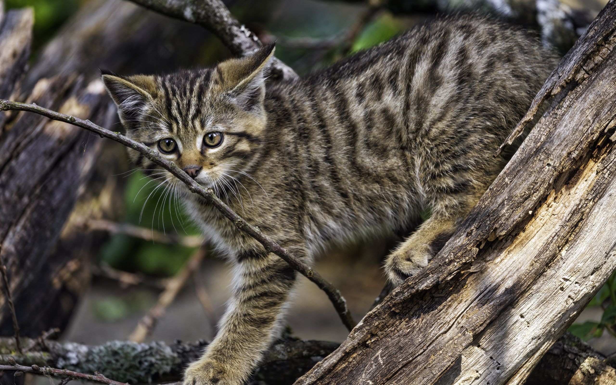 Download 2560x1600 kitten, wild, tree, cute wallpaper, background widescreen 16:10