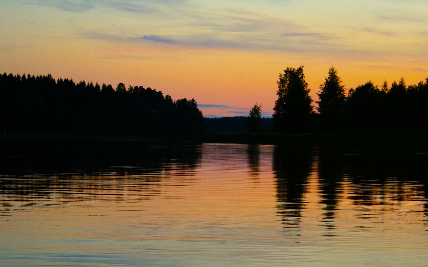 Download 1440x900 lake, trees, sunset, reflection wallpaper, background widescreen 16:10