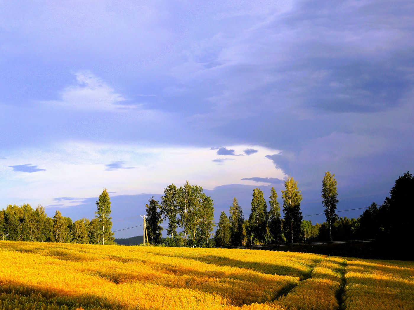 Download 1400x1050 landscape, field, summer, trees, sky, clouds wallpaper, background standard 4:3