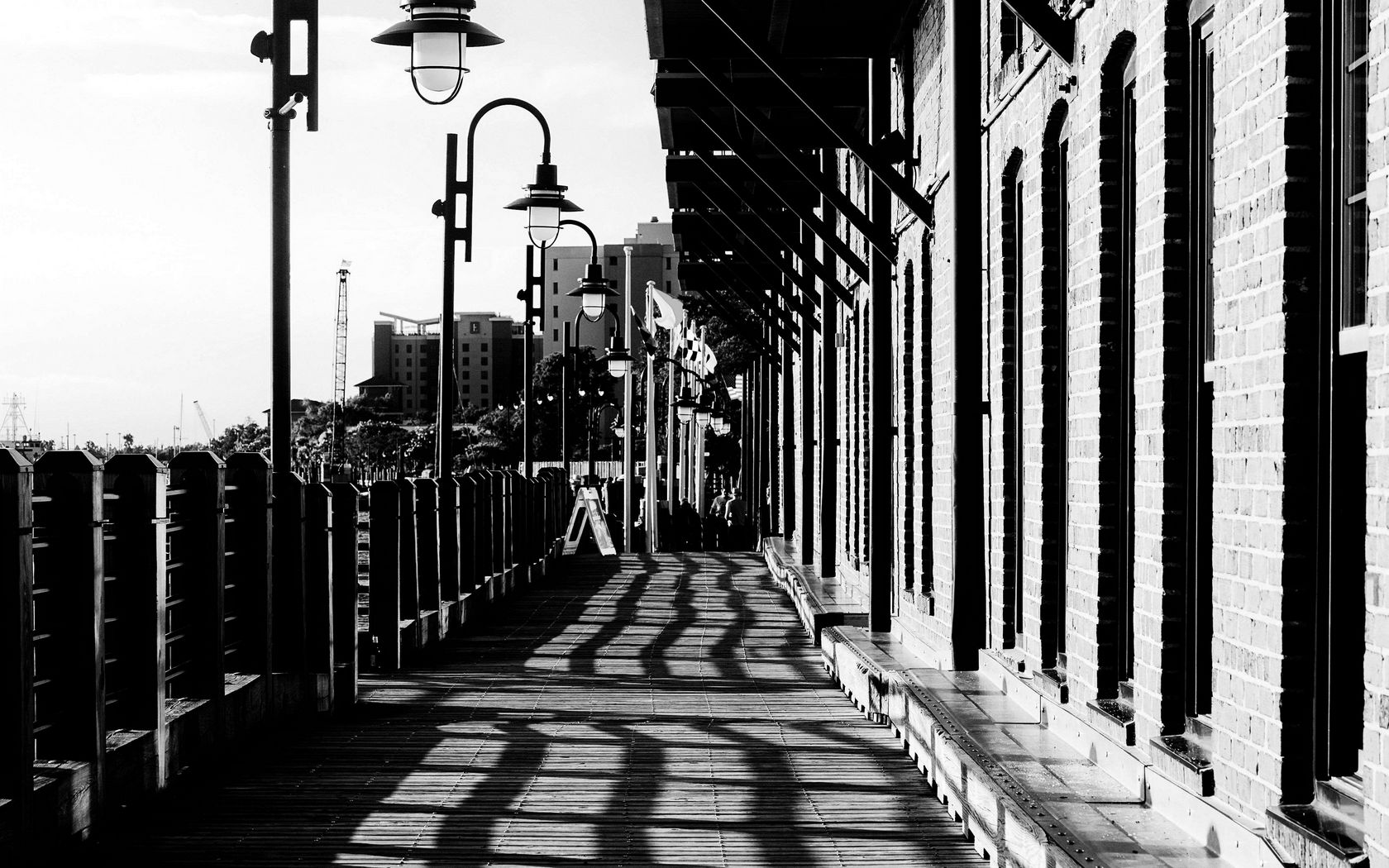 Download 1680x1050 lantern, building, facade, shadows, bw wallpaper, background widescreen 16:10