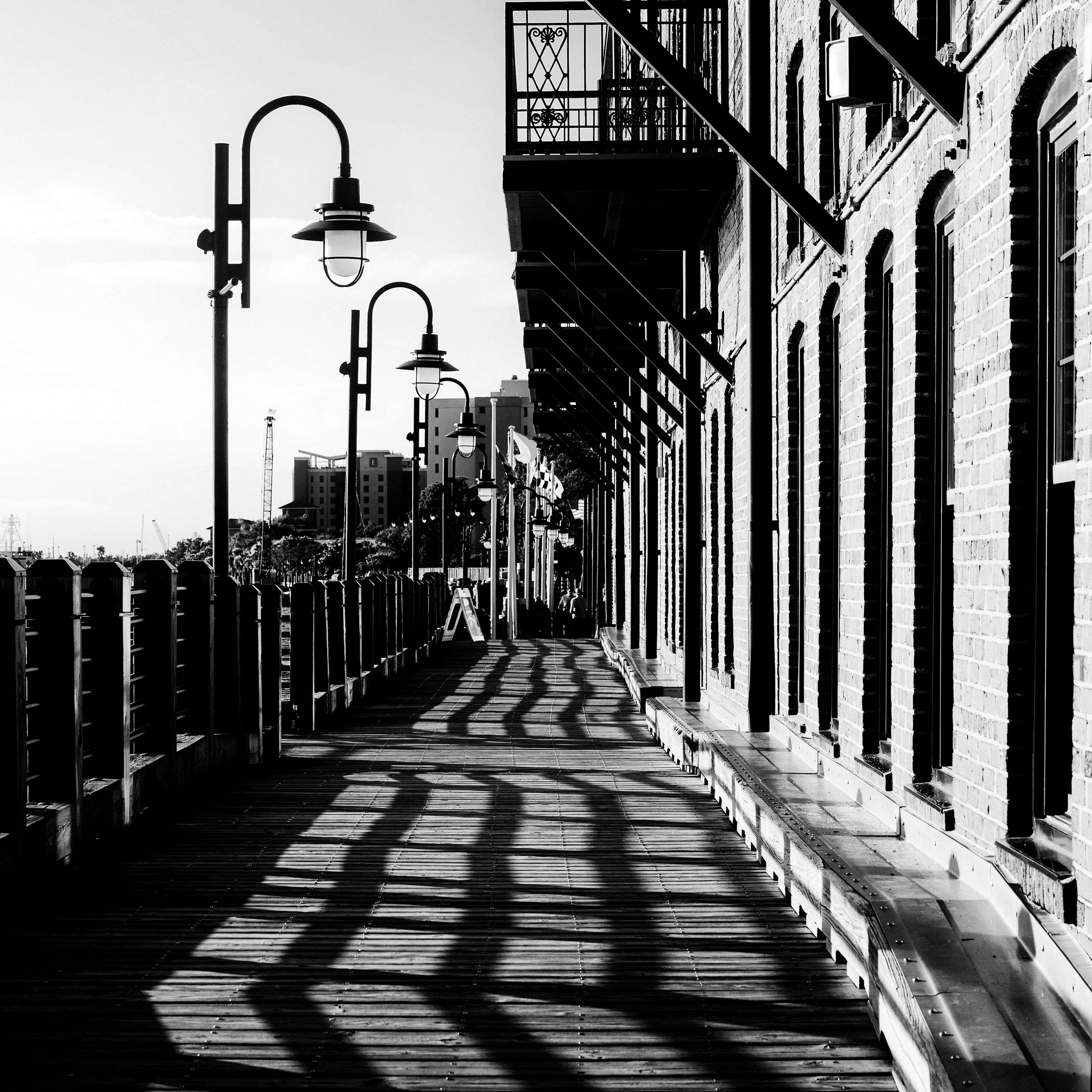 Download 2780x2780 lantern, building, facade, shadows, bw wallpaper, background ipad air, ipad air 2, ipad 3, ipad 4, ipad mini 2, ipad mini 3, ipad mini 4, ipad pro 9.7" for parallax
