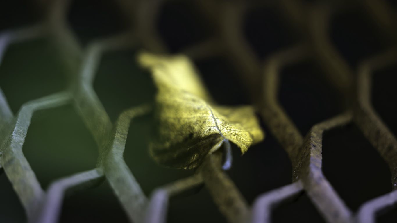 Download 1366x768 leaf, dry, autumn, lattice, macro, blur wallpaper, background tablet, laptop
