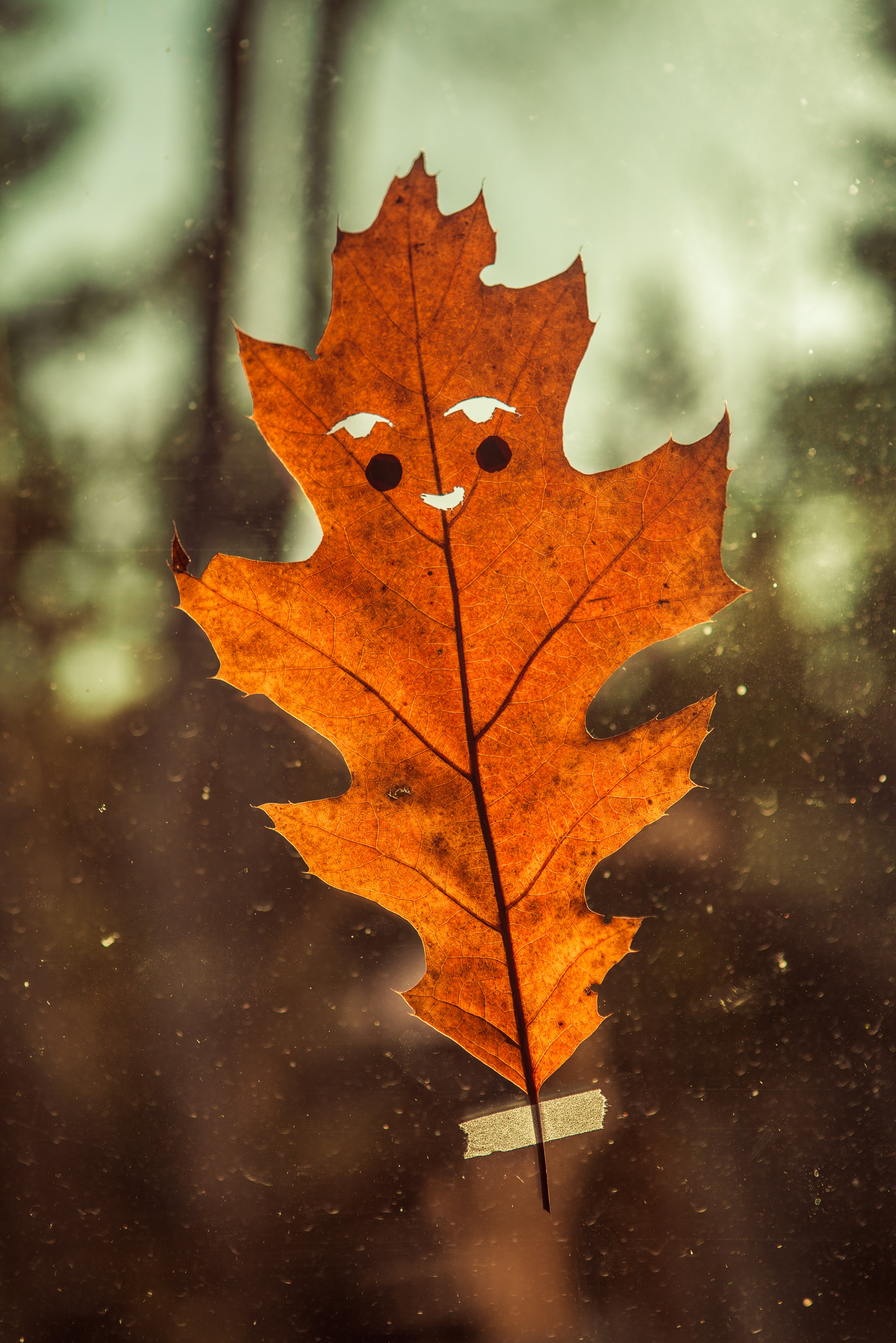 Download 3744x5610 leaf, funny, autumn, smile wallpaper, background