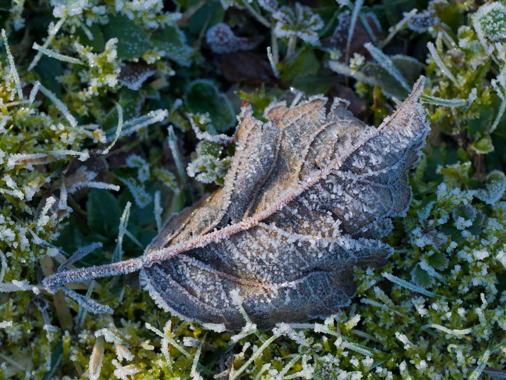 Download 1024x768 leaf, ice, grass, macro wallpaper, background standard 4:3