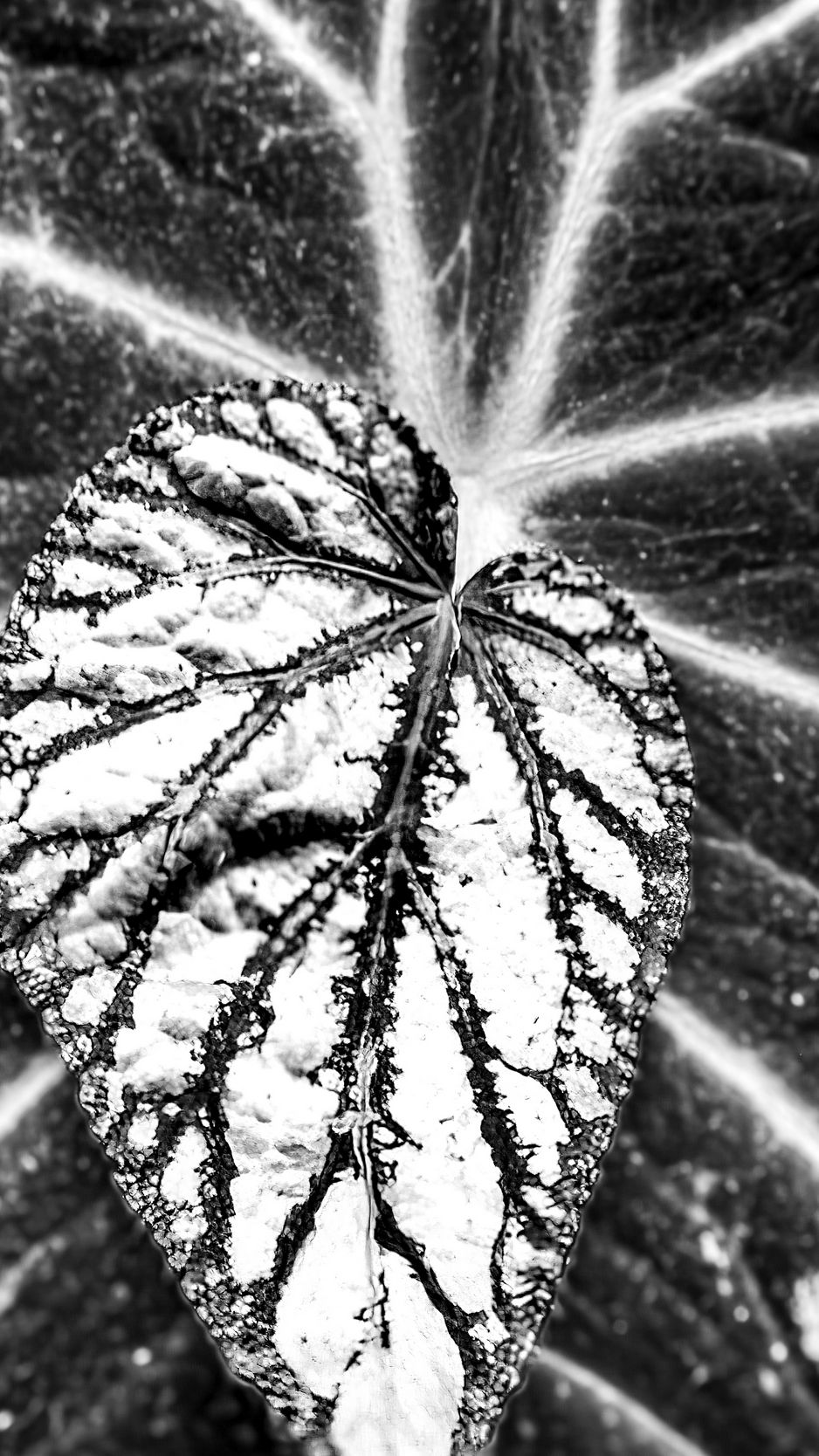 Download 938x1668 leaf, veins, black and white, macro wallpaper, background iphone 8/7/6s/6 for parallax