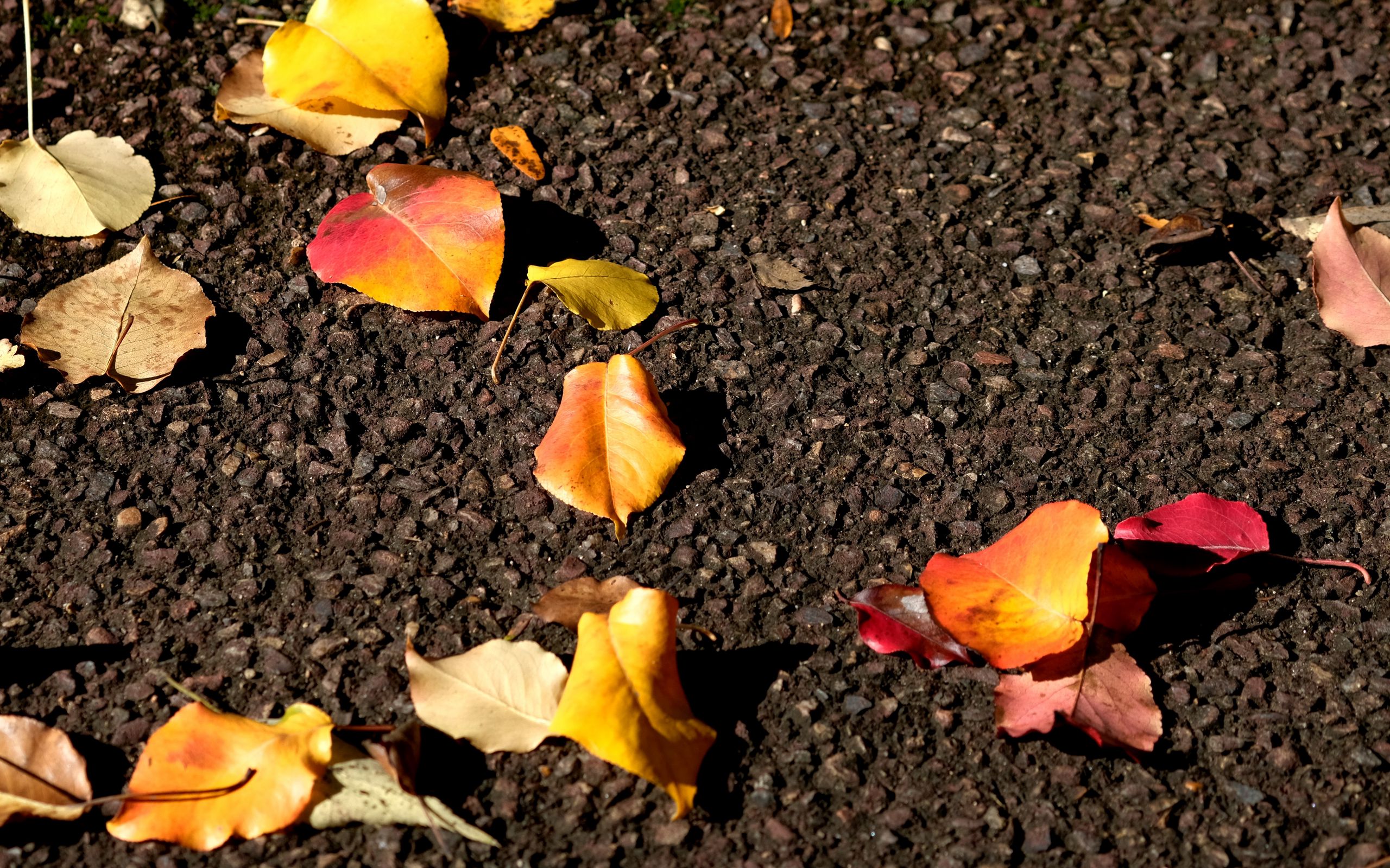 Download 2560x1600 leaves, asphalt, autumn, yellow wallpaper, background widescreen 16:10