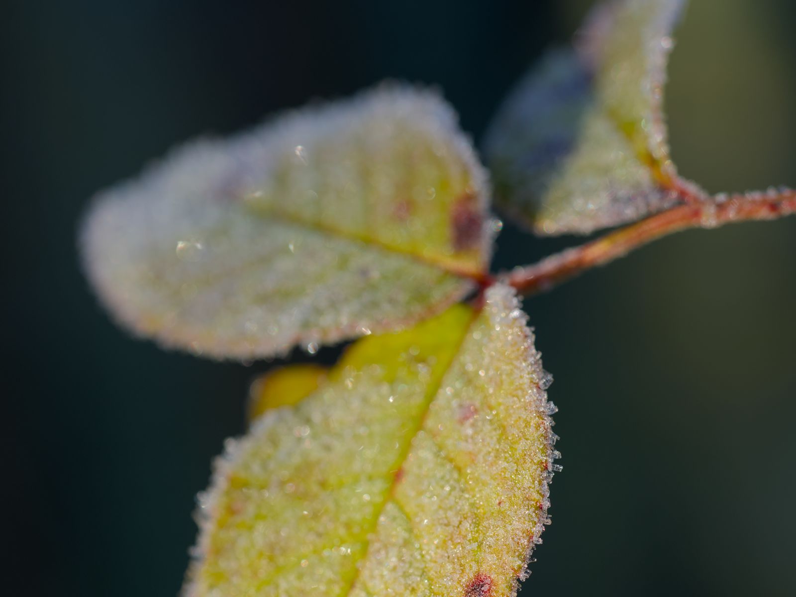 Download 1600x1200 leaves, frost, ice, macro wallpaper, background standard 4:3