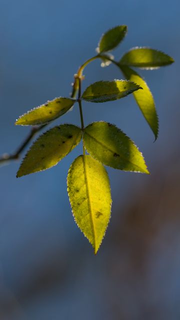 Download 360x640 leaves, plant, macro, frost, green wallpaper, background nokia n8, c5, c6, c7, e7, x6 nokia 5800, 5230, 5228, sony ericsson vivaz