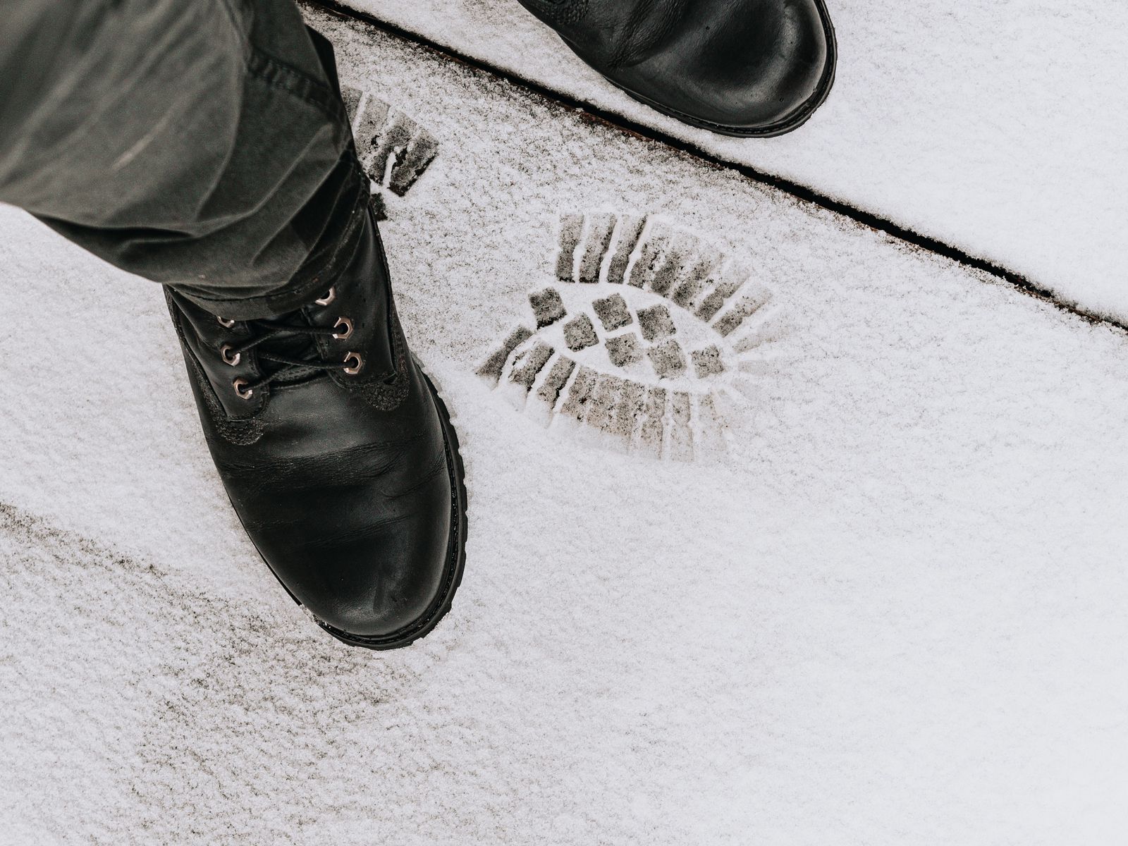 Download 1600x1200 legs, boots, footprint, snow wallpaper, background standard 4:3