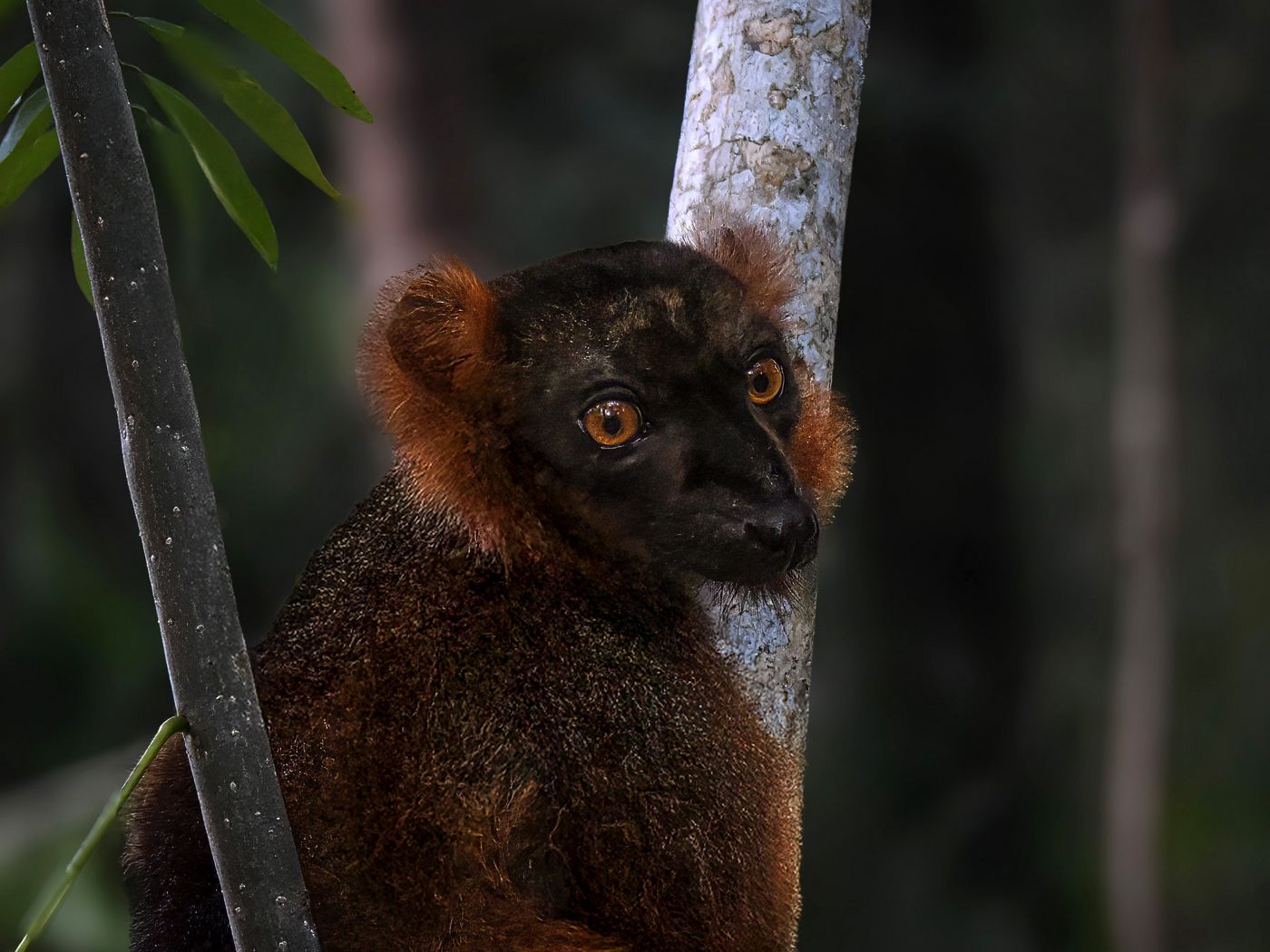 Download 1400x1050 lemur, branches, trees, animal, blur wallpaper, background standard 4:3