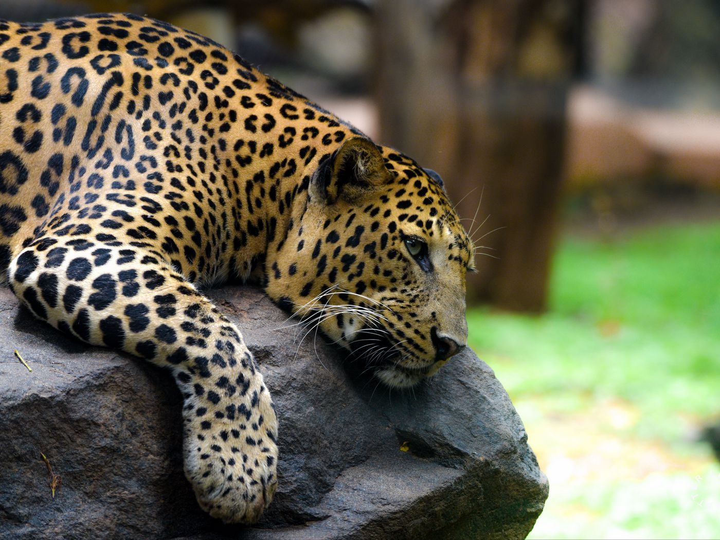 Download 1400x1050 leopard, pose, stone, predator wallpaper, background standard 4:3