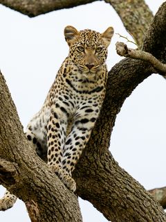 Download 240x320 leopard, predator, big cat, tree, wildlife wallpaper, background old mobile, cell phone, smartphone