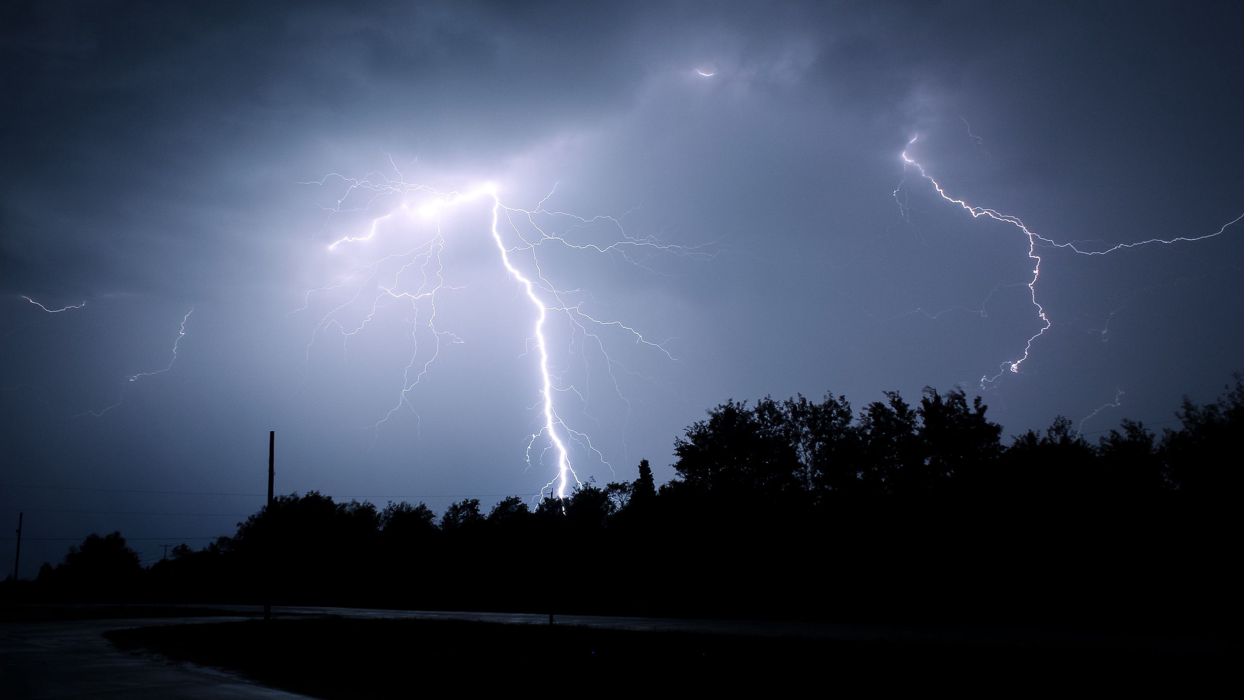 Download 2560x1440 lightning, night, glow, thunderstorm wallpaper, background widescreen 16:9