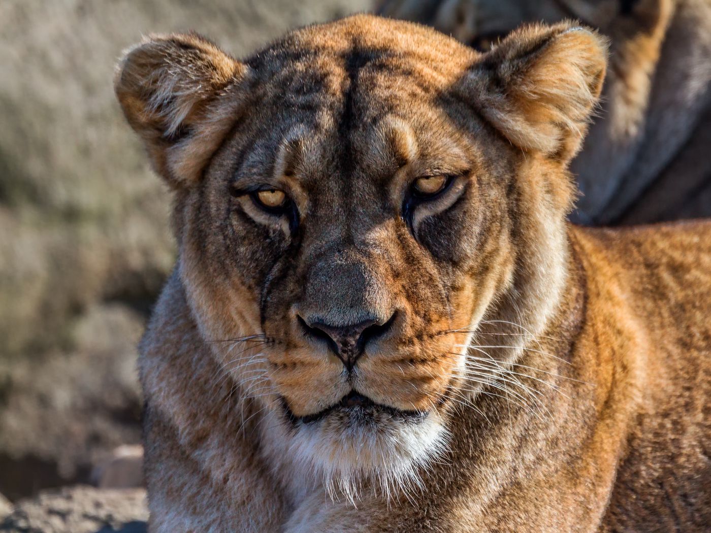 Download 1400x1050 lion, lioness, look, calmness, predator wallpaper, background standard 4:3