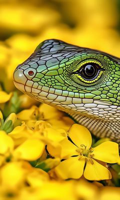 Download 240x400 lizard, reptile, flowers, bright, wildlife wallpaper, background nokia asha 311, samsung galaxy 580, omnia, lg kp500