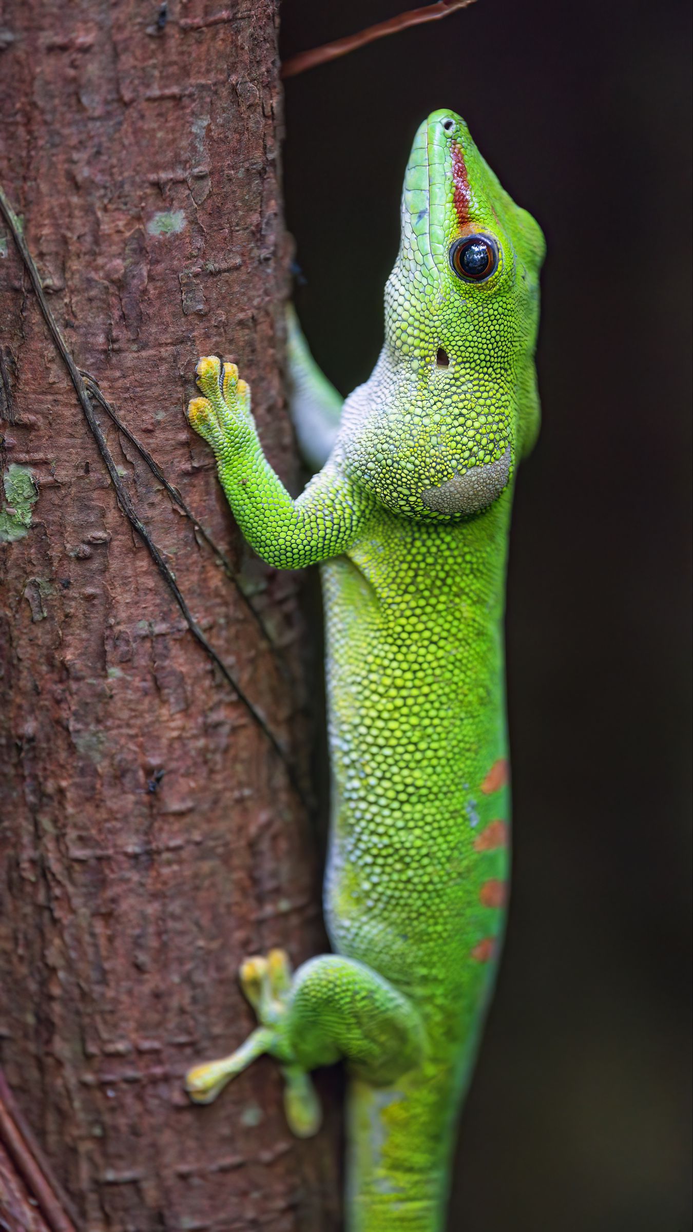 Download 1350x2400 lizard, tree, bright, green, reptile wallpaper, background iphone 8+/7+/6s+/6+ for parallax