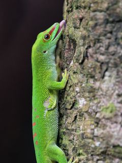 Download 240x320 madagascar day gecko, gecko, lizard, tree, macro wallpaper, background old mobile, cell phone, smartphone