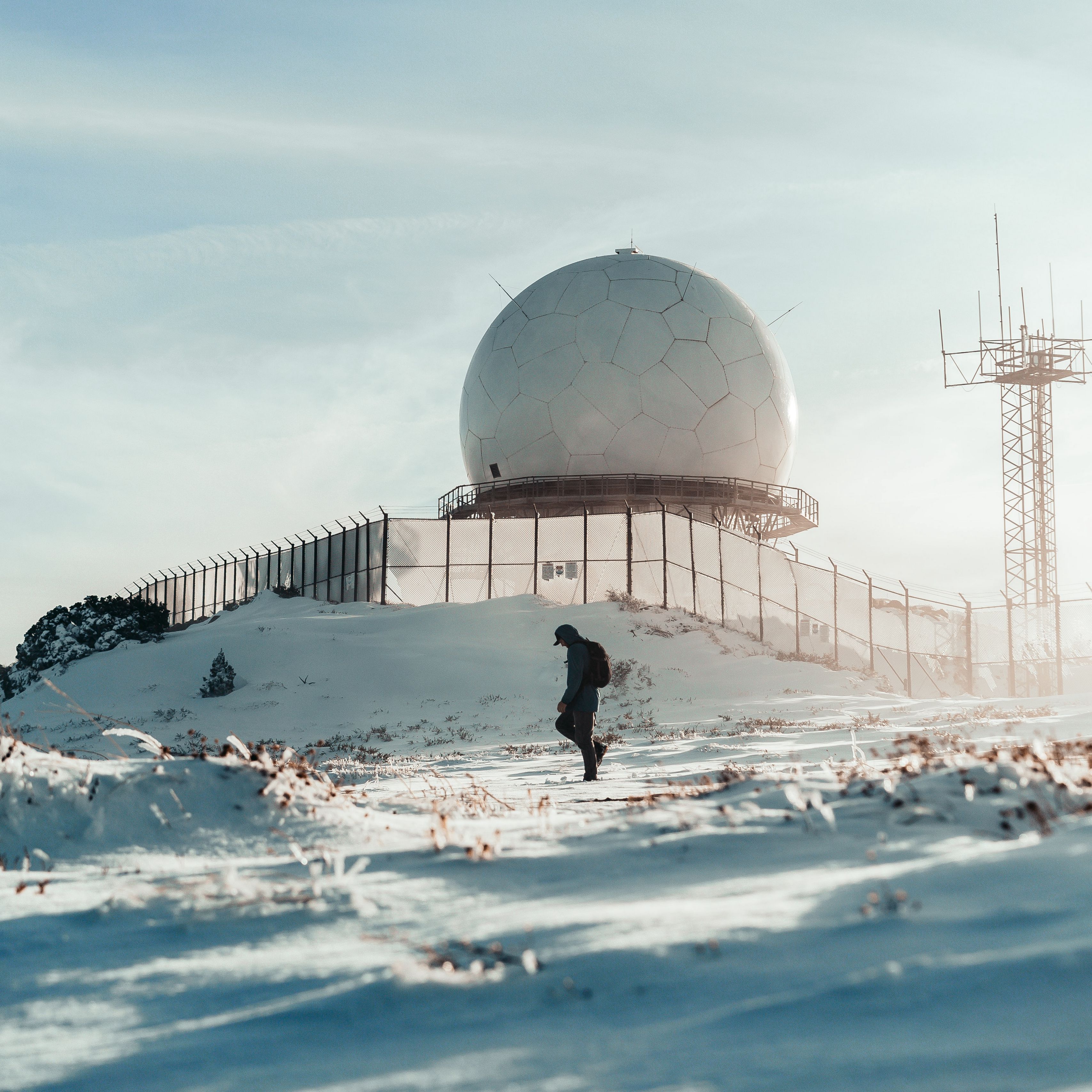 Download 3415x3415 man, alone, building, ball, snow, winter, white wallpaper, background ipad pro 12.9" retina for parallax