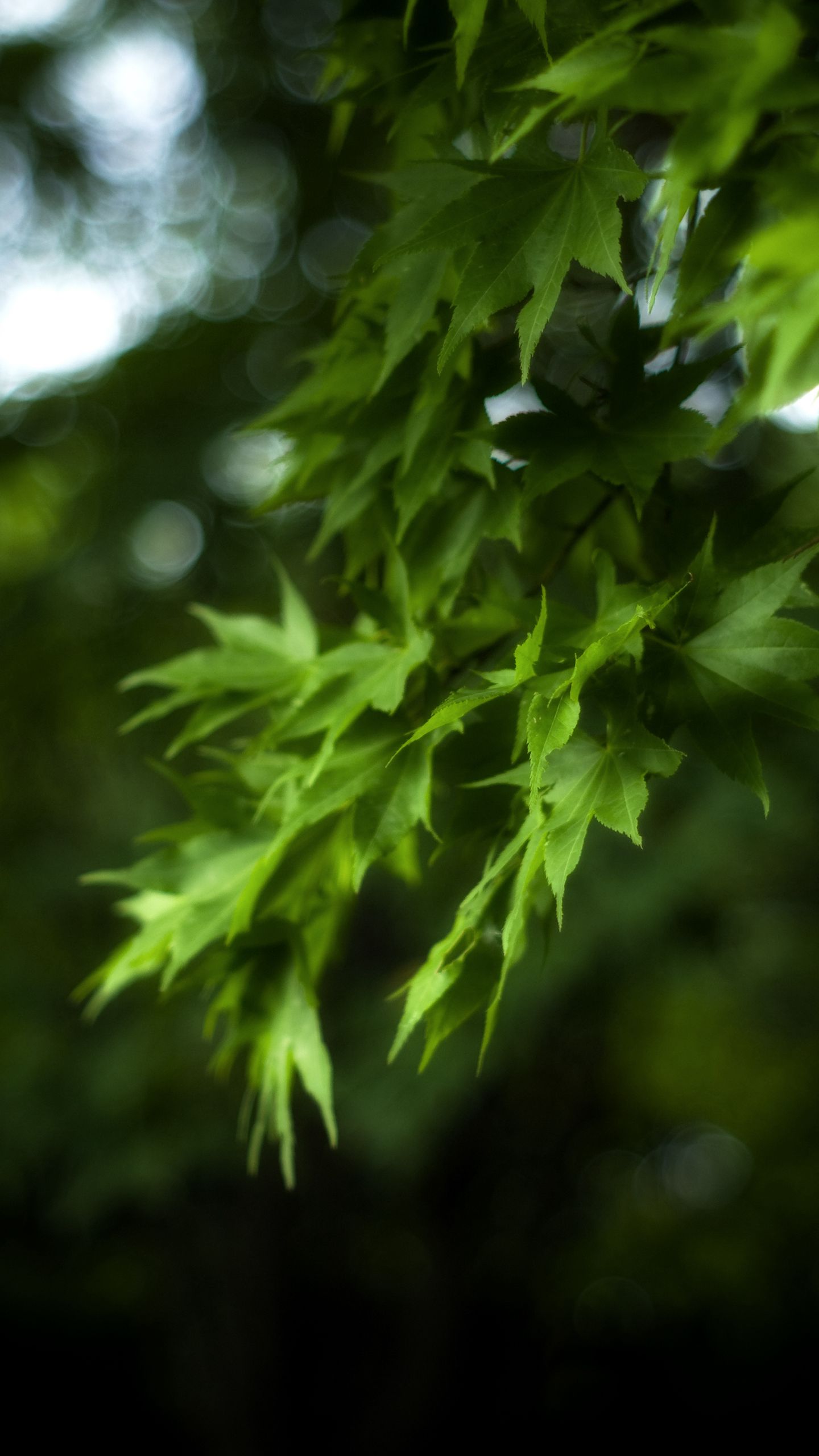 Download 1440x2560 maple, leaves, branch, maple leaves, blur, green wallpaper, background qhd samsung galaxy s6, s7, edge, note, lg g4