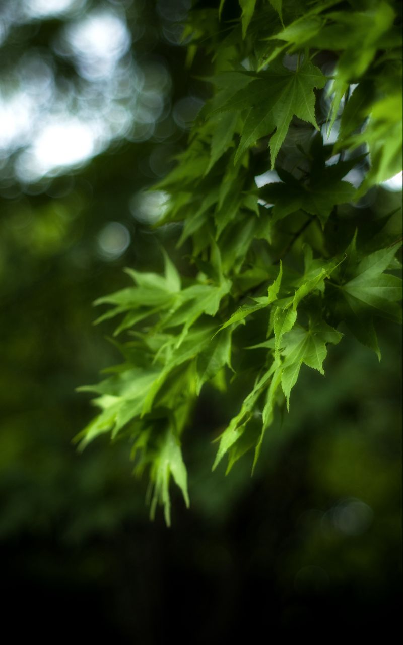 Download 800x1280 maple, leaves, branch, maple leaves, blur, green wallpaper, background samsung galaxy note gt-n7000, meizu mx2