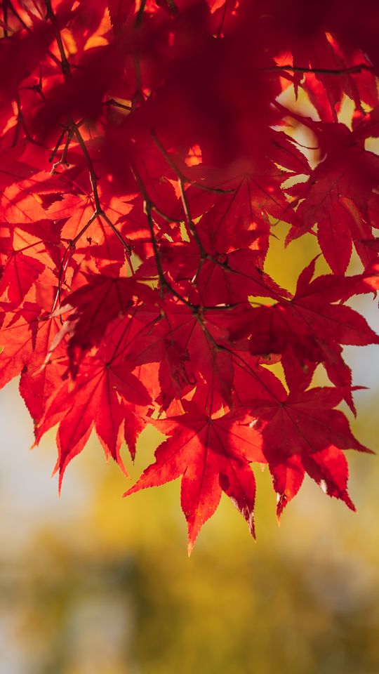 Download 540x960 maple, leaves, branches, autumn, macro, red wallpaper, background samsung galaxy s4 mini, microsoft lumia 535, philips xenium, lg l90, htc sensation