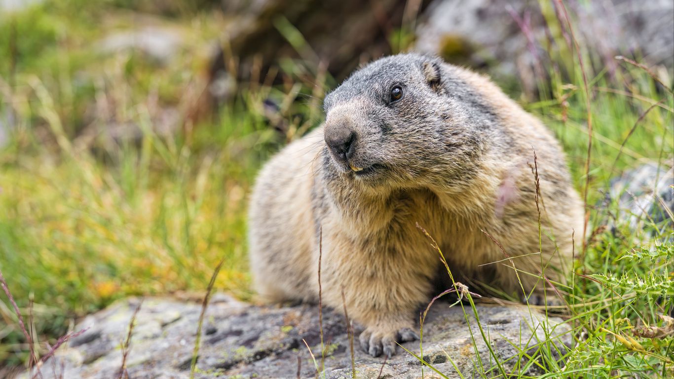 Download 1366x768 marmot, wildlife, rock, animal wallpaper, background tablet, laptop