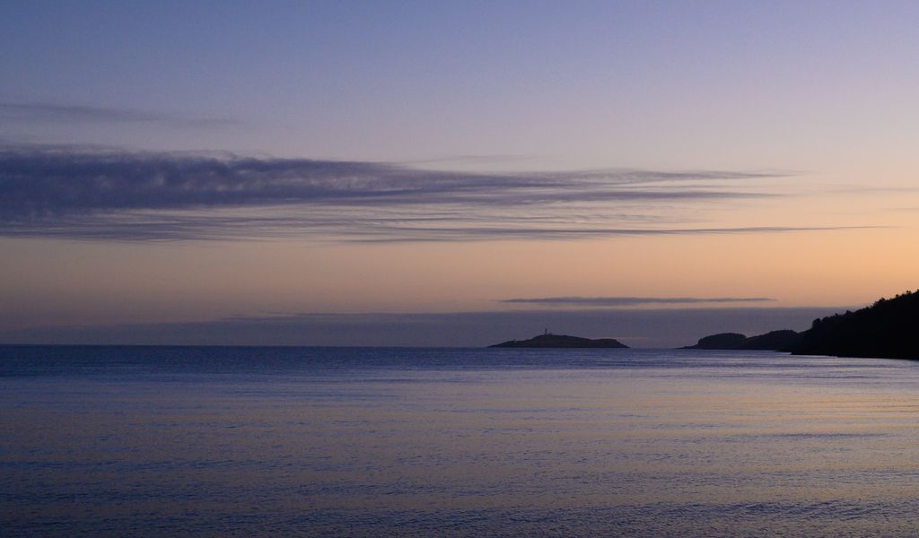 Download 1024x600 month, horizon, water, sky wallpaper, background netbook, tablet