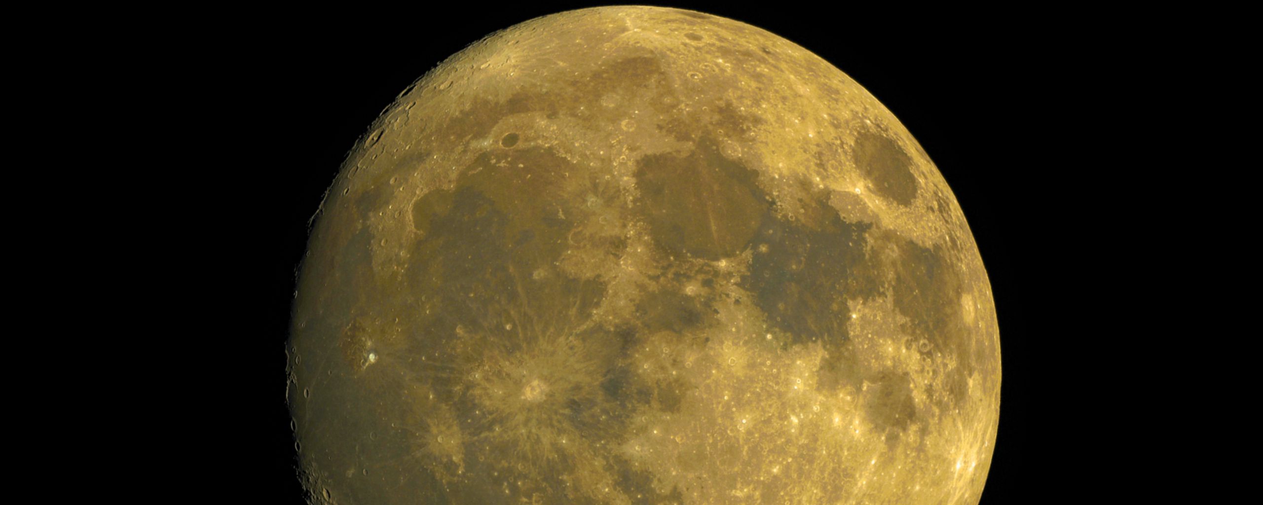 Download 2560x1024 moon, satellite, craters, yellow, space wallpaper, background ultrawide monitor