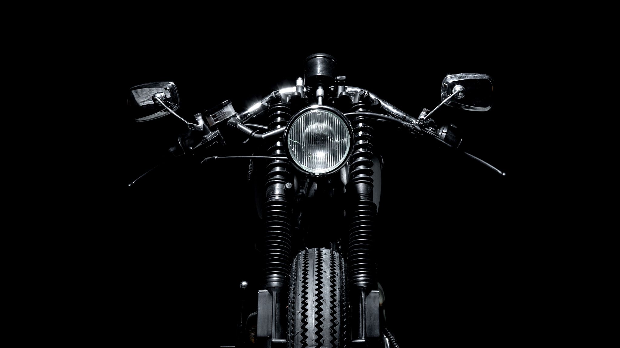 Download 2048x1152 motorcycle, headlight, tire, bw wallpaper, background ultrawide monitor