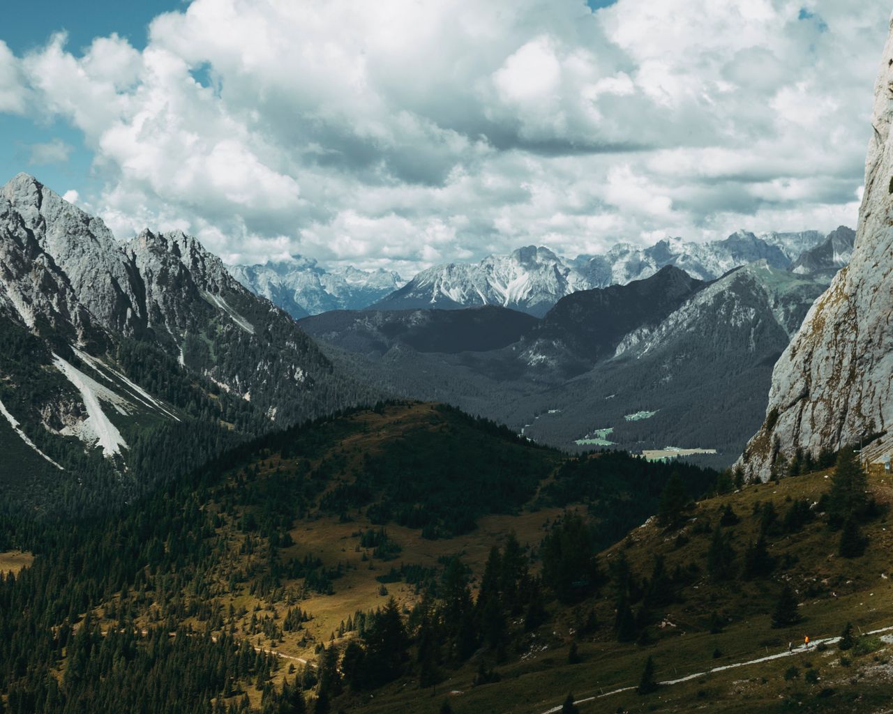 Download 1280x1024 mountains, clouds, paths, aerial view, landscape wallpaper, background standard 5:4