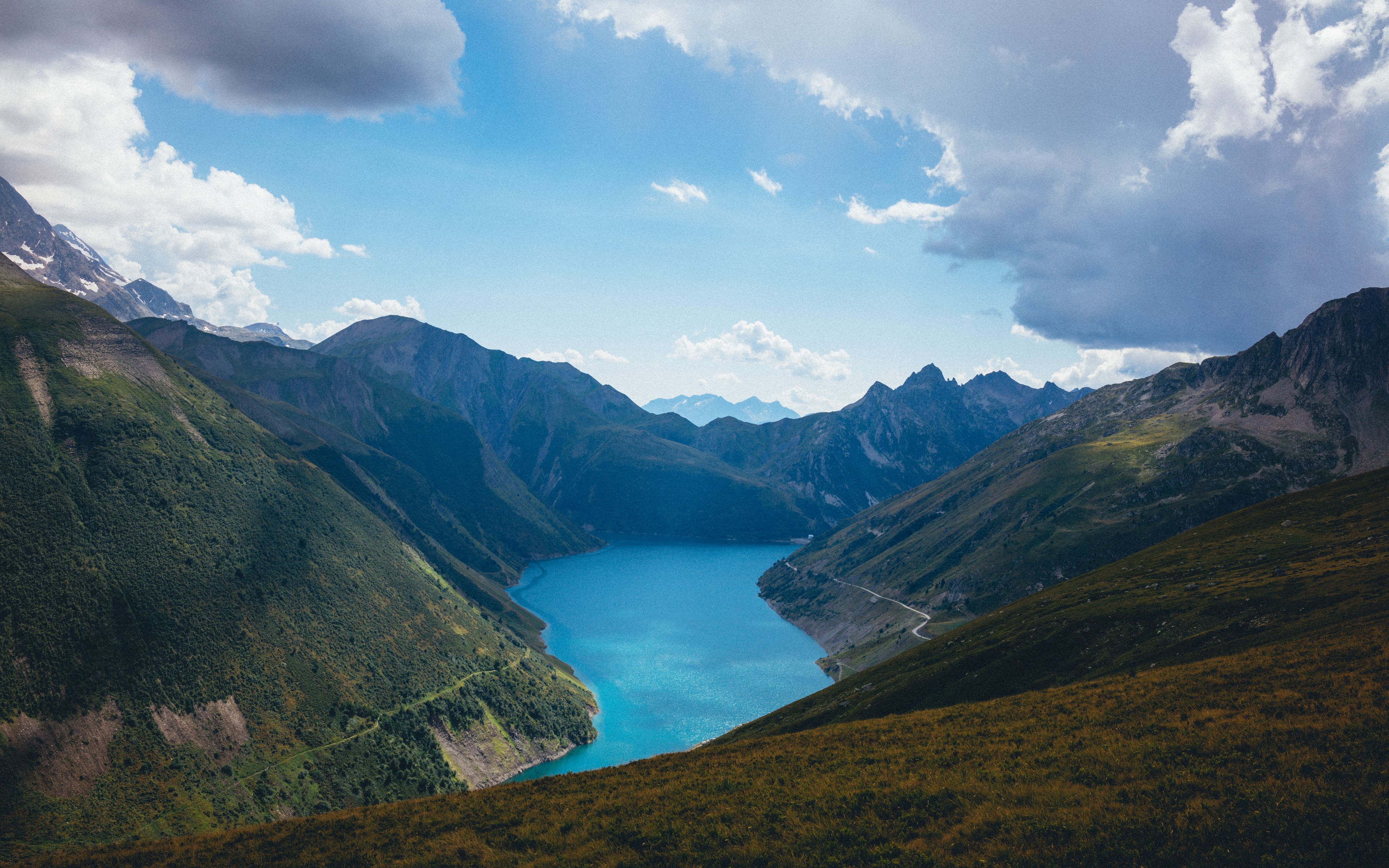 Download 3840x2400 mountains, nature, landscape, clouds, lake wallpaper, background 4k ultra hd 16:10