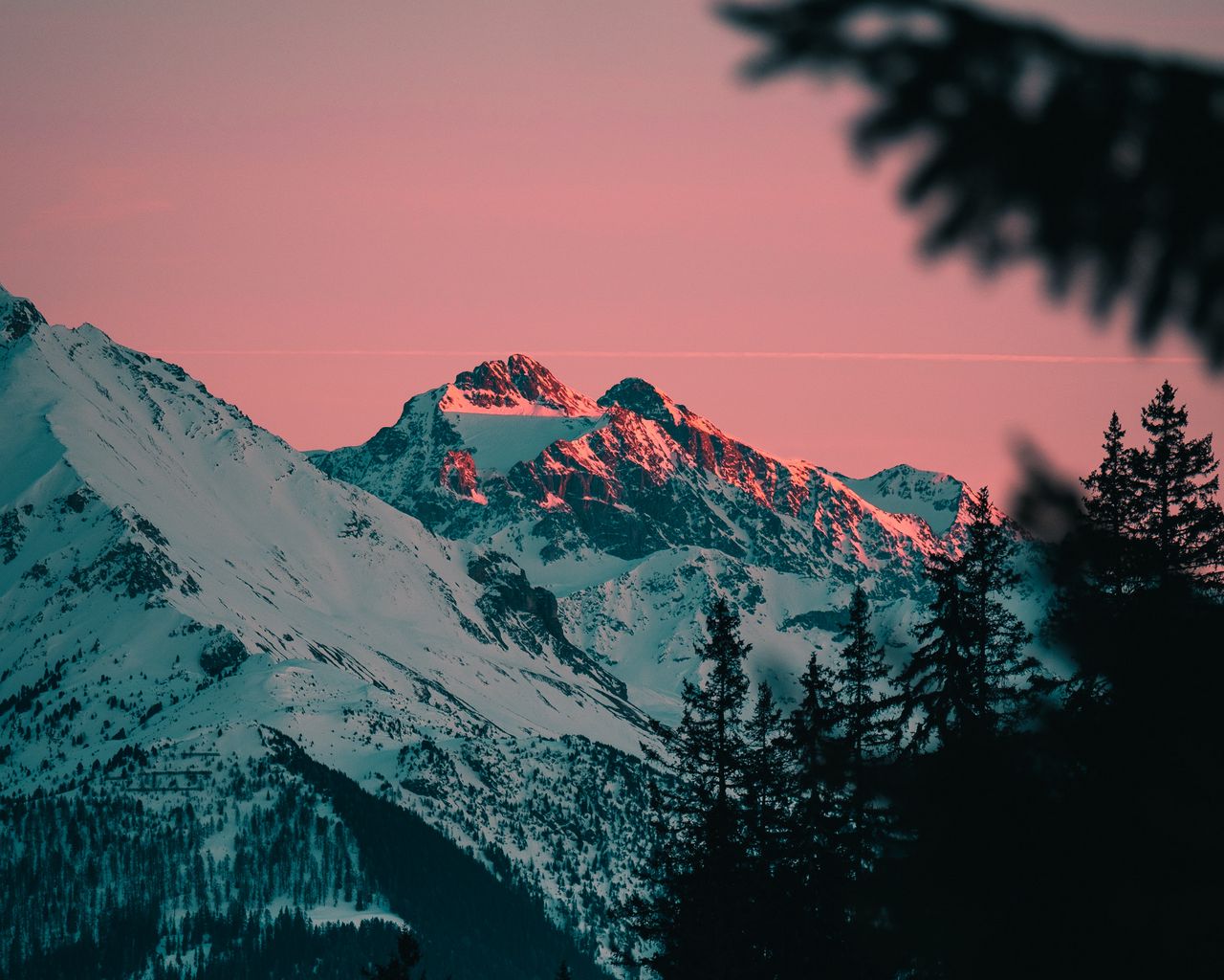 Download 1280x1024 mountains, snowy, dusk, landscape, evening wallpaper, background standard 5:4