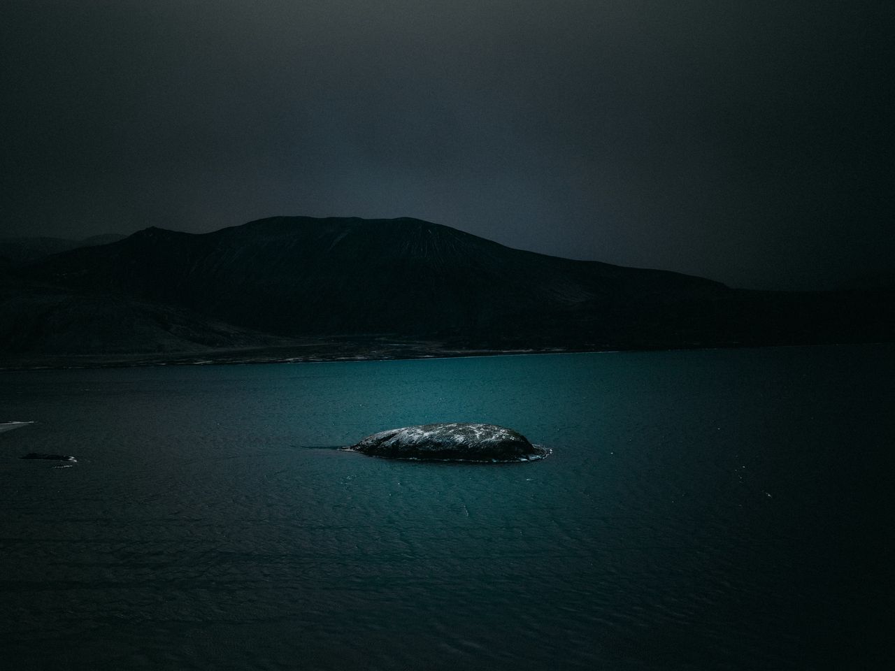 Download 1280x960 mountains, water, blocks, dark wallpaper, background standard 4:3
