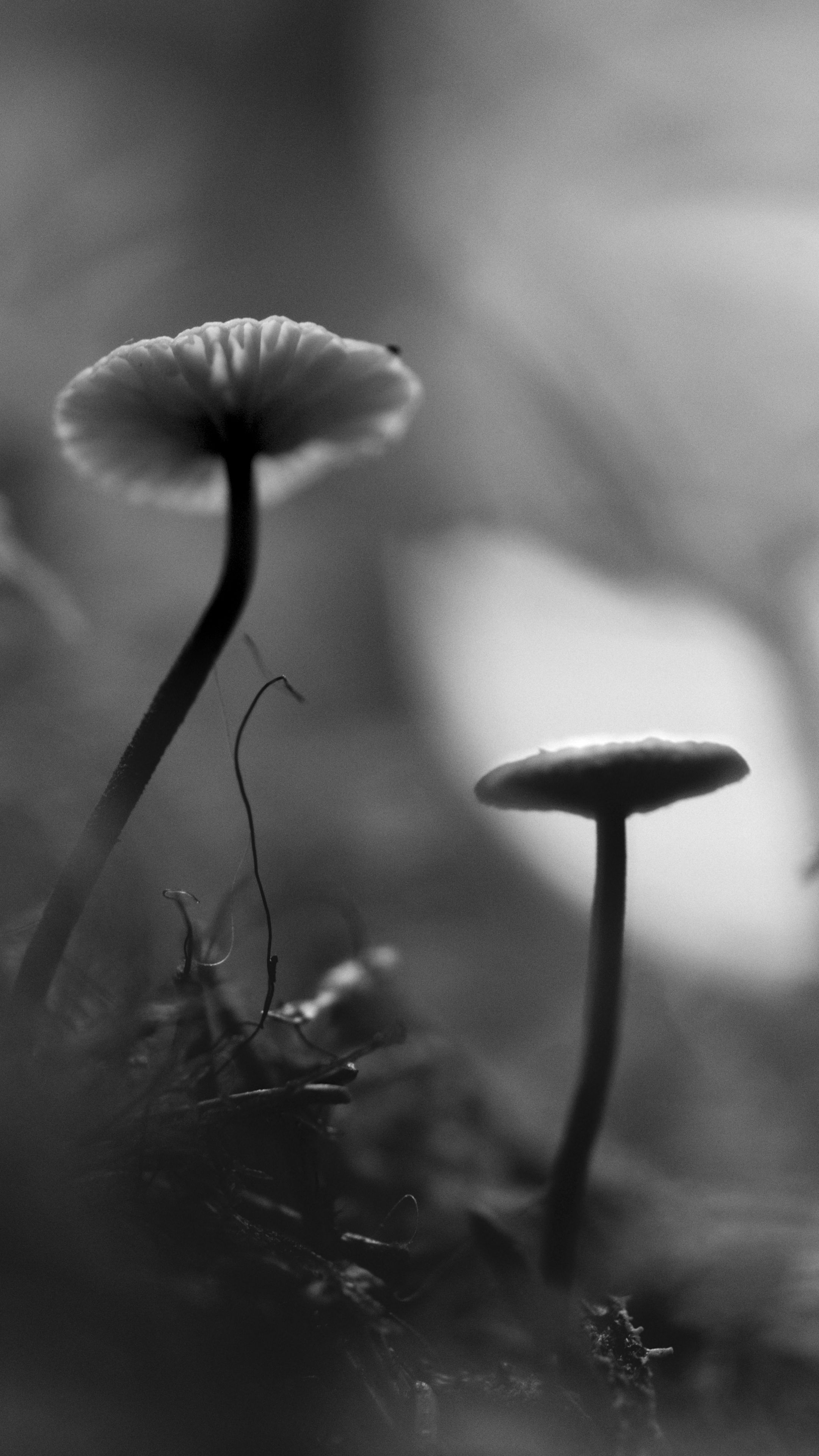 Download 2160x3840 mushrooms, grass, plants, macro, bw wallpaper, background samsung galaxy s4, s5, note, sony xperia z, z1, z2, z3, htc one, lenovo vibe