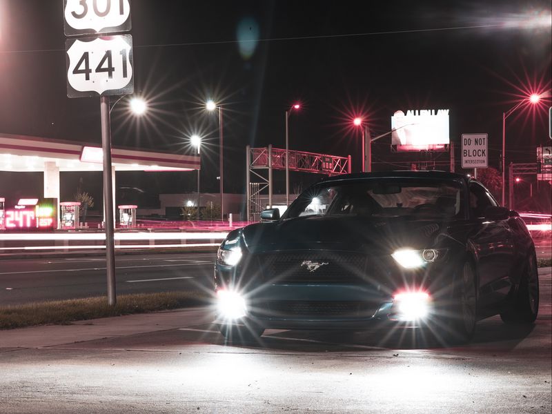 Download 800x600 mustang, car, lights, light, road wallpaper, background pocket pc, pda