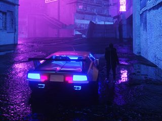 Download 320x240 neon, car, silhouette, street, night wallpaper, background nokia e72, e71, asha, alcatel onetouch